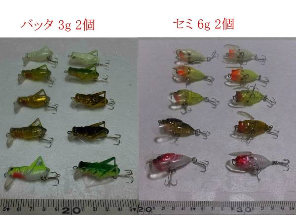 - 送料無料 匿名 新品 ルアーセット バッタ セミ フロッグ カエル 合計8個