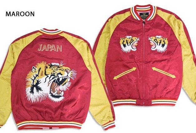 - レーヨンスカジャン「TIGER」◆HOUSTON マルーン XXLサイズ 51525 ヒューストン 和柄 和風 虎 トラ タイガー スーベニアジャケット