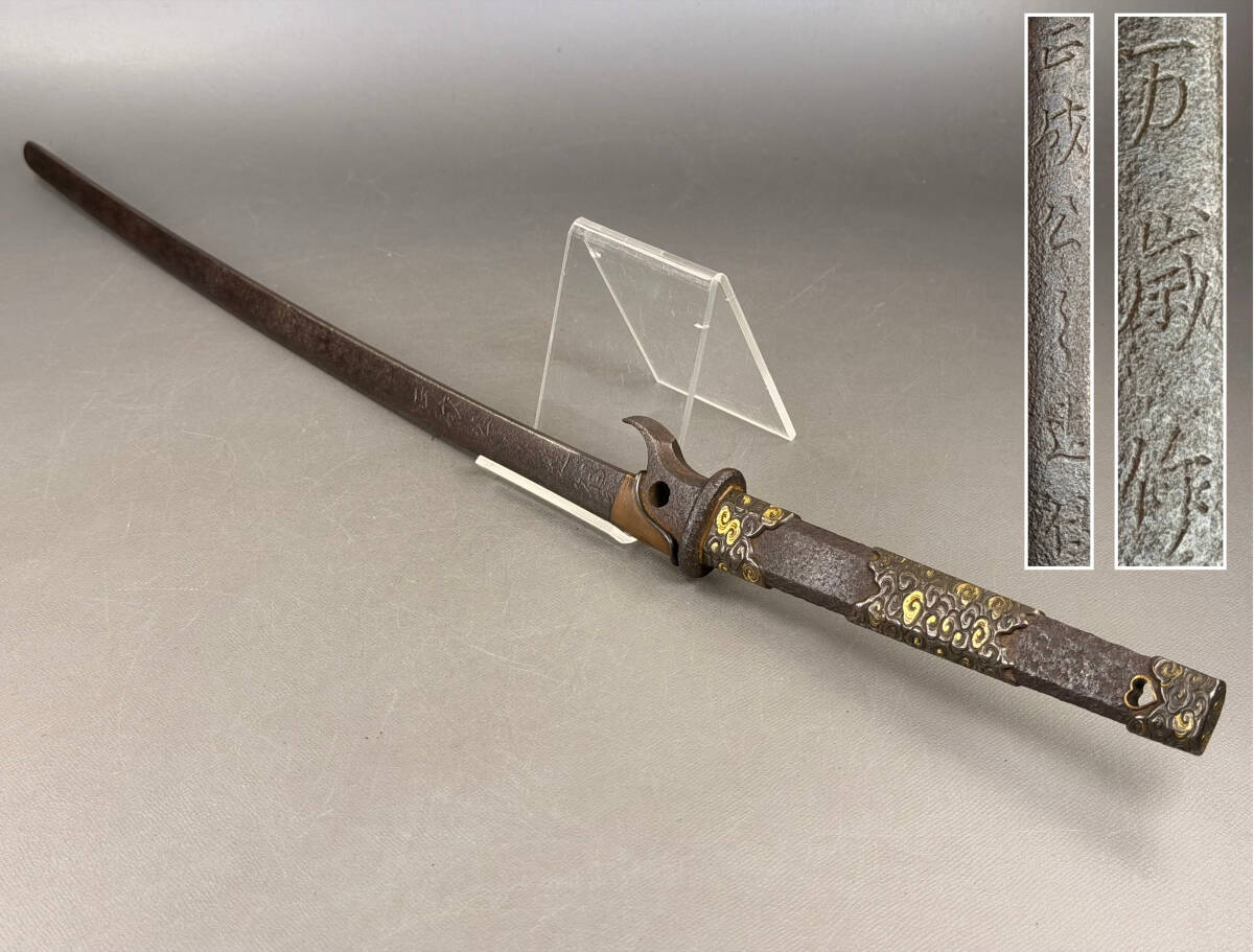 - 【偲】十手 金象嵌 時代武具 古道具 骨董 武具 捕物 重量447g 長さ約51㌢ 指揮刀 鎧甲 武具 兜割 箱付き r-920