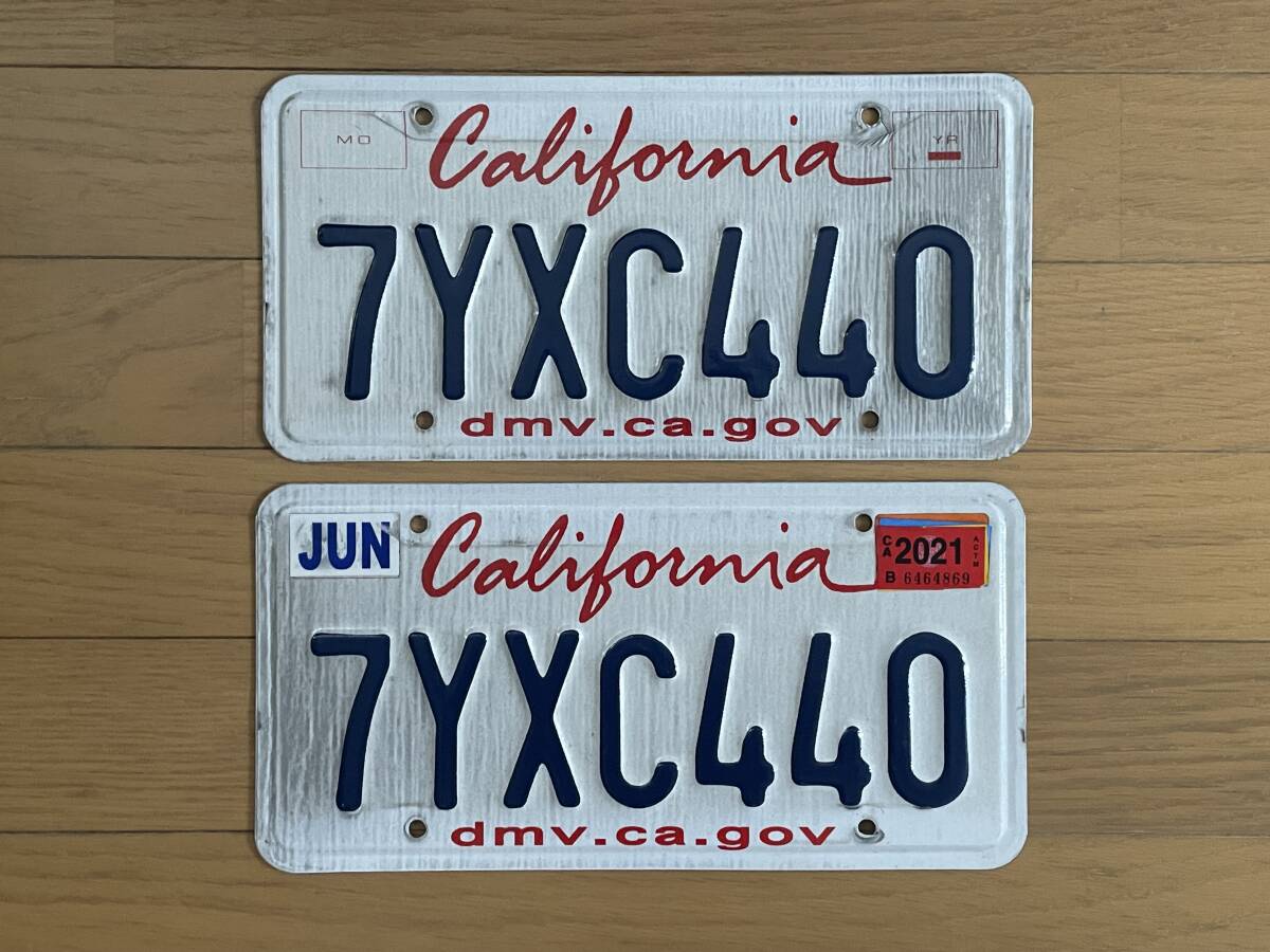 > カリフォルニア ライセンスプレート 7YXC440 2枚セット USDM 世田谷ベース 米国トヨタ シボレー フォード ロサンゼルス ナンバープレート