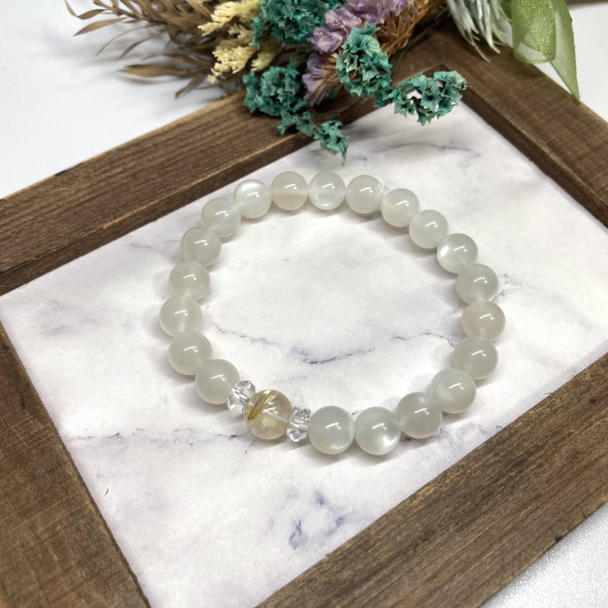 - ムーンストーン&ルチルクォーツ ブレスレット パワーストーン レディース 女性 金運 仕事運 開運 天然石ブレス