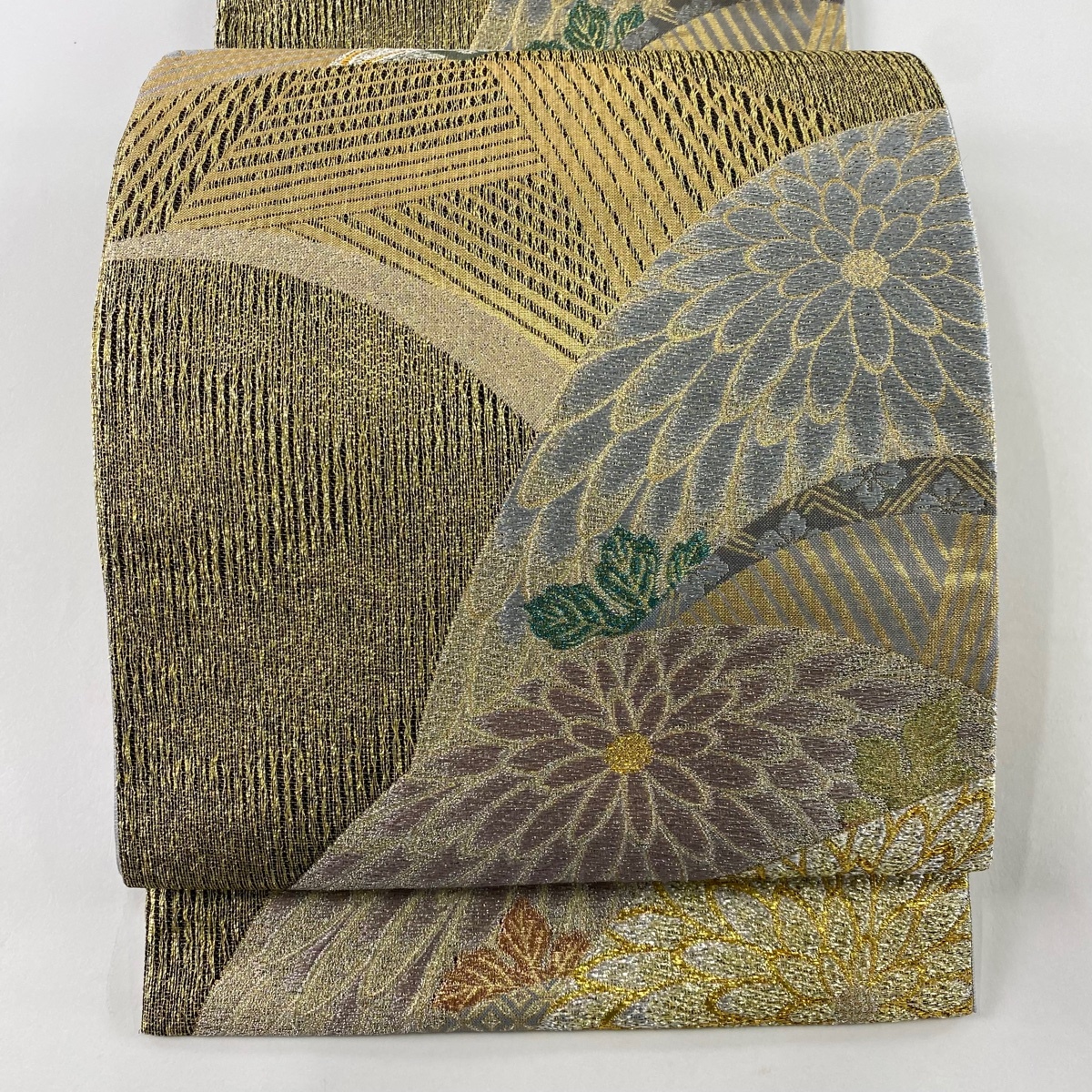 - 【美品】 袋帯 名品 青海取菊文様 七宝 箔 金銀糸 金色 六通 正絹 【中古】
