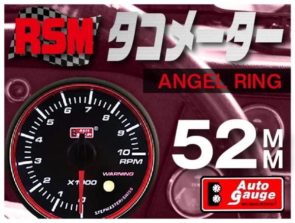 - オートゲージ タコメーター 52Φ RSM スイス製モーター スモークレンズ エンジェルリング ワーニング オープニングセレモニー 52mm