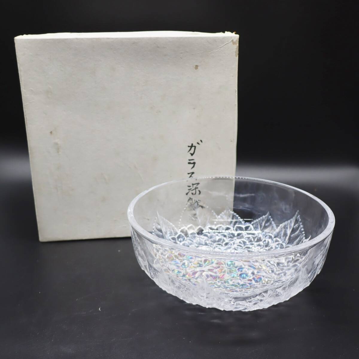◆ 直径約20.2㎝ 深さ約7㎝|ガラス深鉢 硝子深鉢 草花柄| | ■O9570の出品です!
