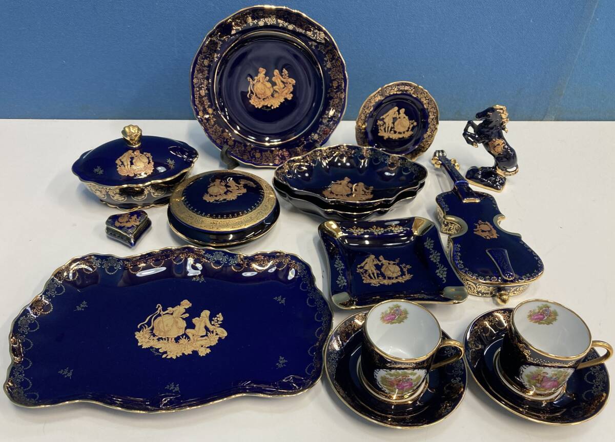 > 10-o19/1-80 LIMOGES CASTEL リモージュキャッスル セット 13点 皿 小物入れ カップ 置物 等 陶器 西洋 アンティーク 22K GOLDあり