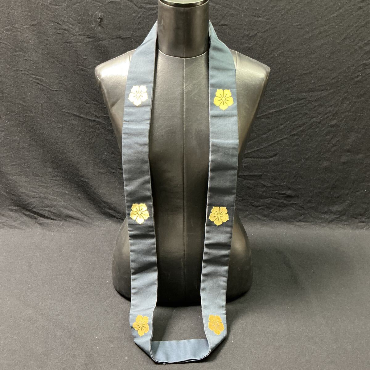 - 【LPB629】真言宗 智山派 輪袈裟 絹 色無地 紺色 桔梗紋 金糸刺繍 法衣 法要 装束 着物 僧侶 お坊さん
