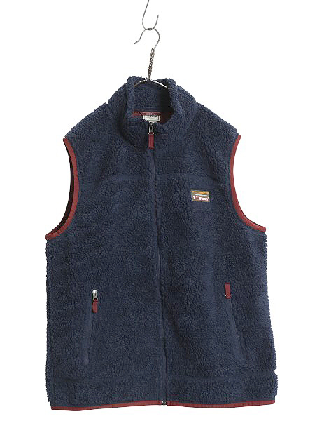 - エルエルビーン パイル フリース ベスト メンズ L アウトドア フルジップ ハイネック ボア メッシュ ライナー付き 前開き 重ね着 ネイビー