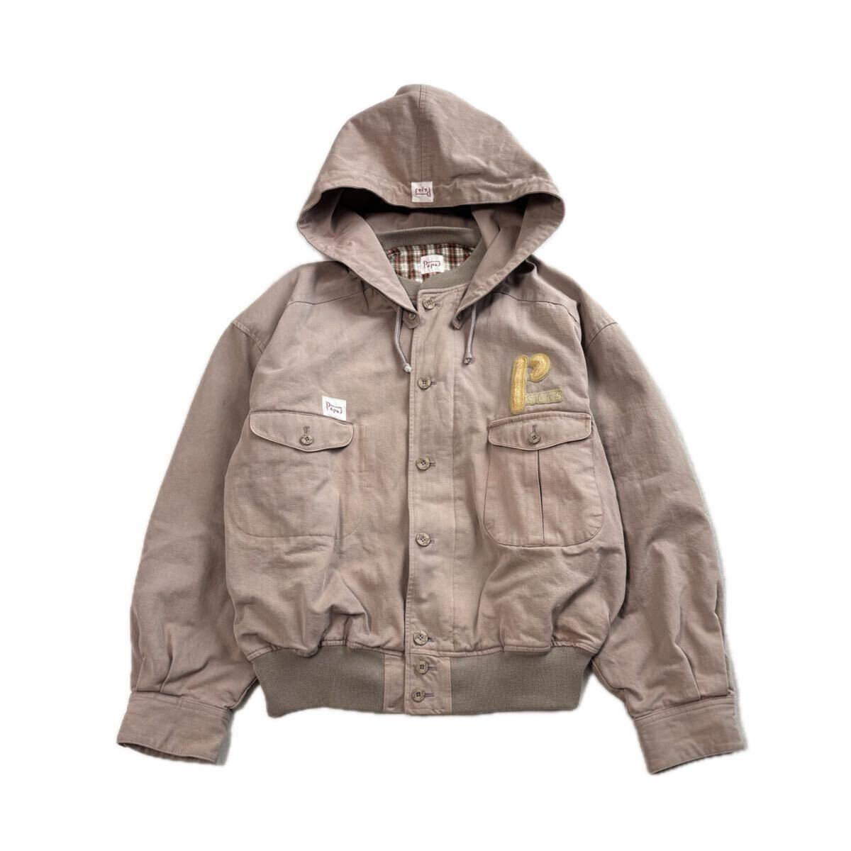 - Papas パパス ブルゾン フライトジャケット スタジャン フーデット ma1 ロゴ刺繍 コットン 綿 メンズ Mサイズ 古着