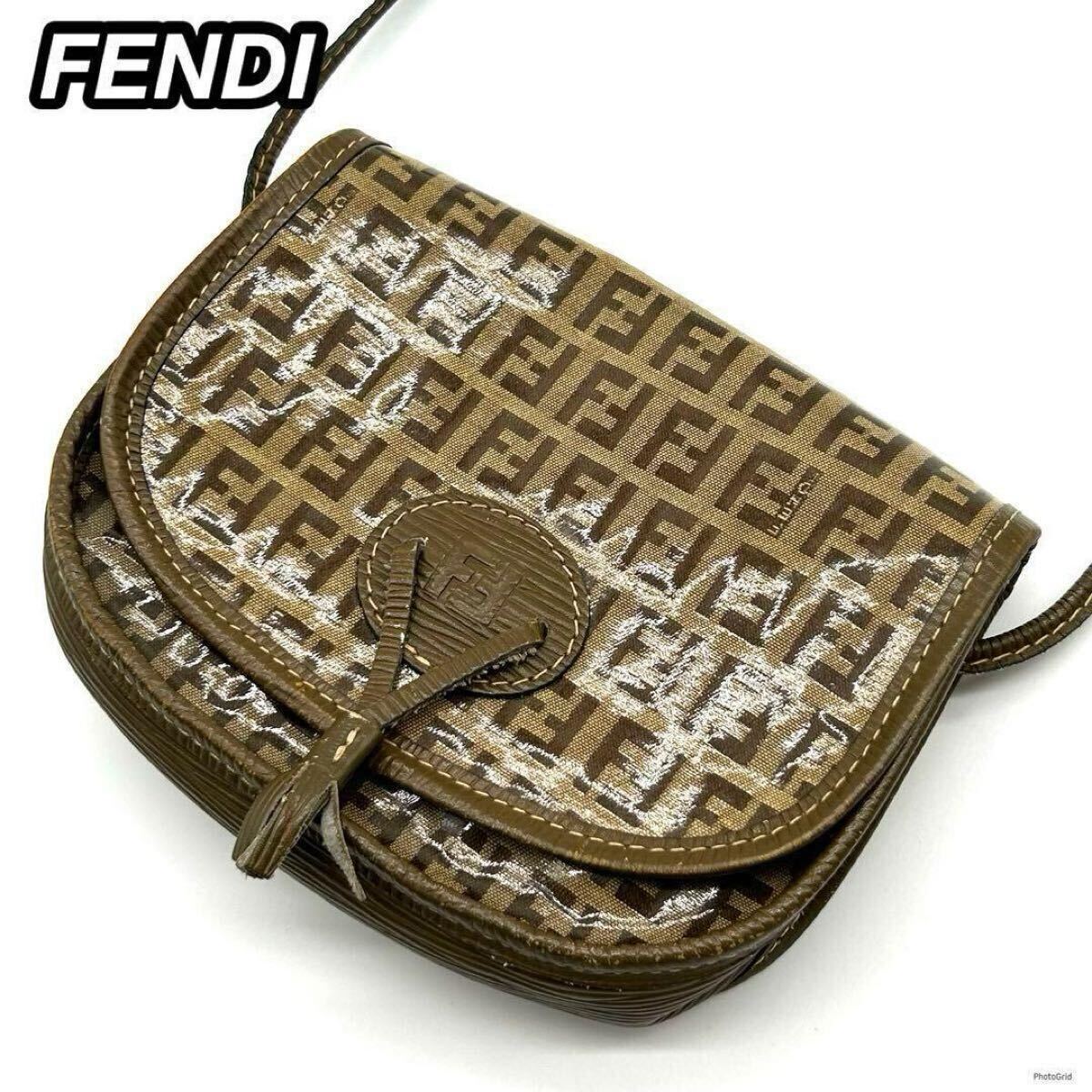 - フェンディ FENDI ワンショルダーバッグ ズッカ柄 エナメル タッセル 肩掛け可 斜め掛け可 コンパクト ヴィンテージ ブラウン