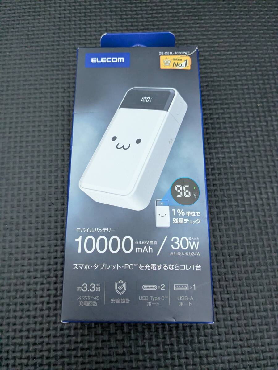 > ◎0709u3030 エレコム モバイルバッテリー 30W 10000mAh 残量表示 PD対応 3ポート ケーブル付属 しろちゃん DE-C51L-10000WF