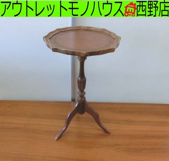 アンティーク 木製ワインテーブル レザートップ 高さ52cm 八角形天板 花台 サイドテーブル ヨーロピアン レトロ ビンテージ 札幌 西野店