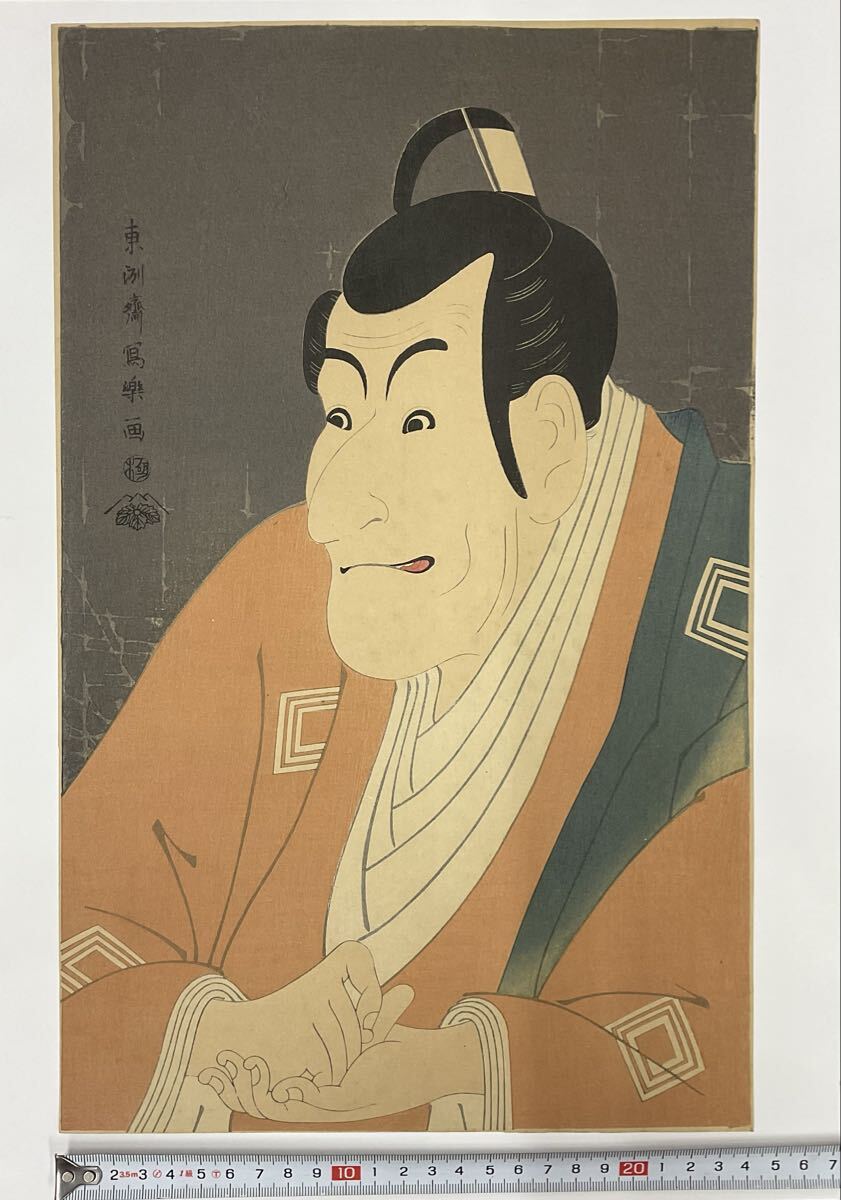 - [真作保証]東洲斎写楽 手刷り複製浮世絵版画 1枚 蔦屋重三郎 錦絵彩色木版画 市川鰕蔵の竹村定之進 大首絵 歌舞伎役者絵