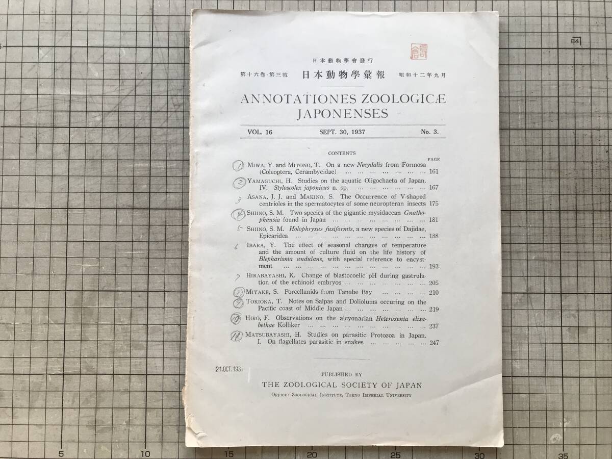 > 『日本動物学彙報 第16巻第3号』水戸野武夫・三輪勇四郎・山口英二・椎野季雄・三宅貞祥・時岡隆・弘冨士男他 日本動物学会 1937年刊 00492