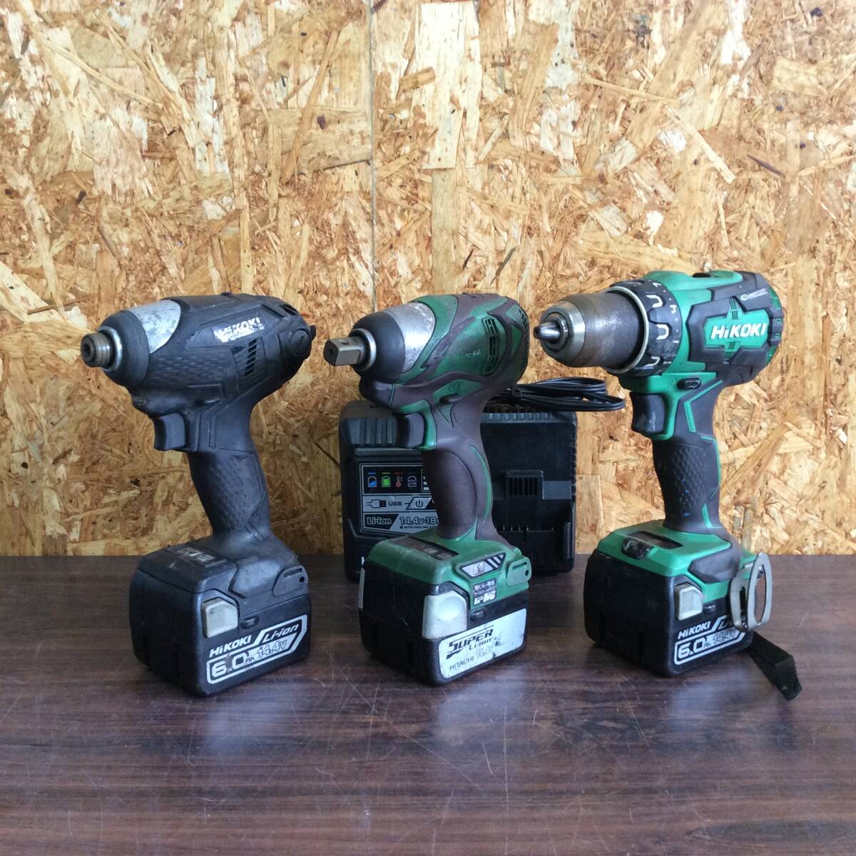 > 【WH-8411】中古品 HIKOKI ハイコーキ 工具セット(インパクトドライバ/インパクトレンチ/ドライバドリル) 充電器+バッテリ3個セット
