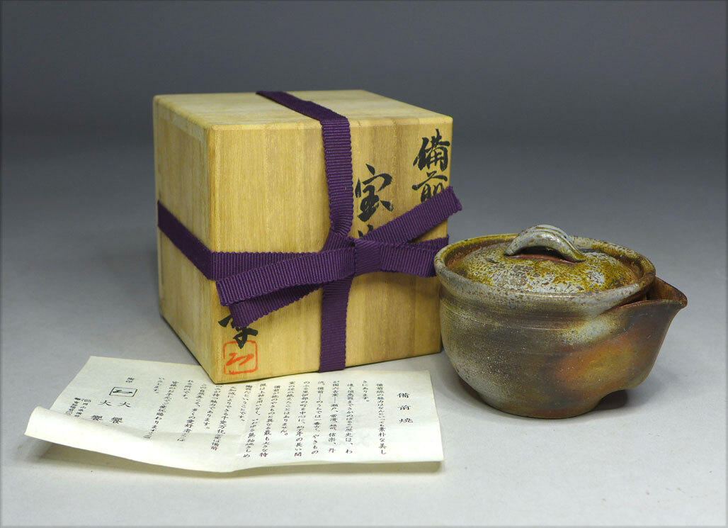 ●煎茶道具 大饗章 備前焼 窯変宝瓶・急須 共箱   検/中国古玩朱泥紫砂拍卖