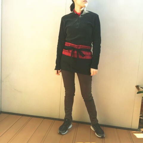 - 着物素材使用【長めサイズ】1400円エンジ格子に黒地ポケットカフェエプロン