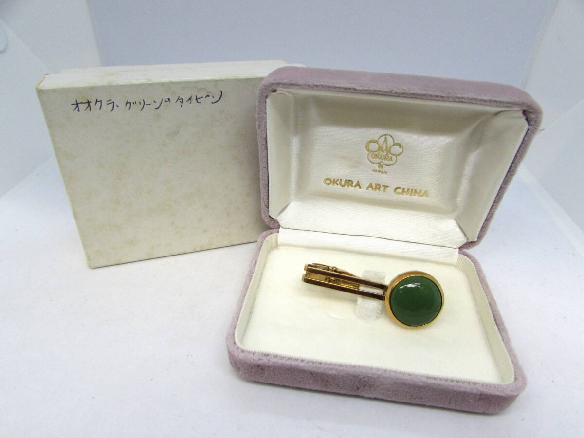 - 大倉陶園 丸型 タイピン ゴールドカラー×グリーン ケース付き メンズアクセサリー 服飾小物