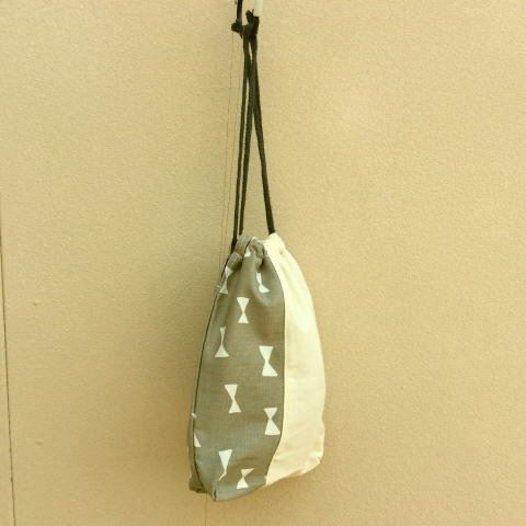 - 【入学、入園!】500円グレーリボンパッチワーク巾着袋 【手作り小物】