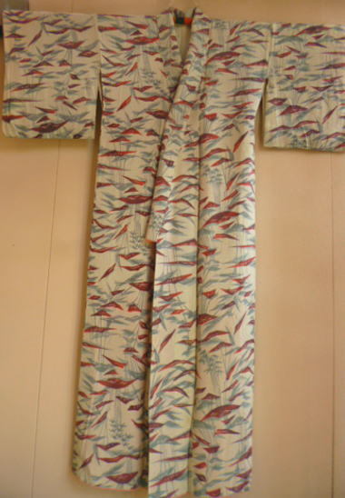 - 掘り出しました!2000円笹文袷小紋【洗える着物】お稽古着