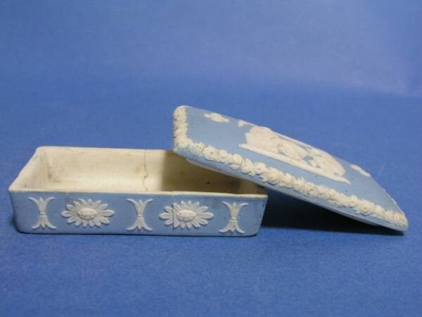 - ◎1920年代 ウェッジウッド 青色を被せた白のジャスパー 長方形蓋物◎h
