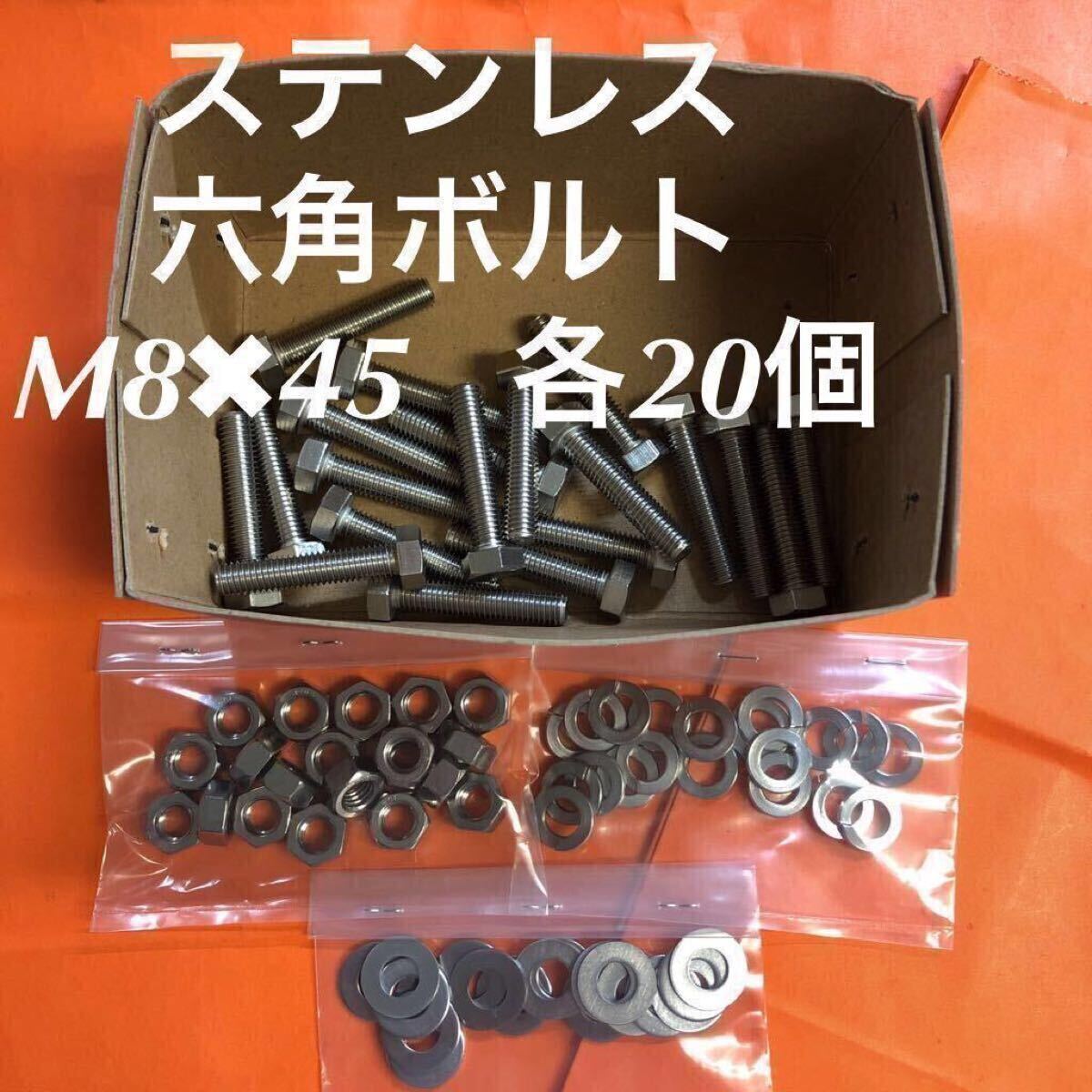 > ★送料込★ステンレス 六角ボルト M8×45 ナット・平ワッシャー・スプリングW 各20個 ステン六角ボルト