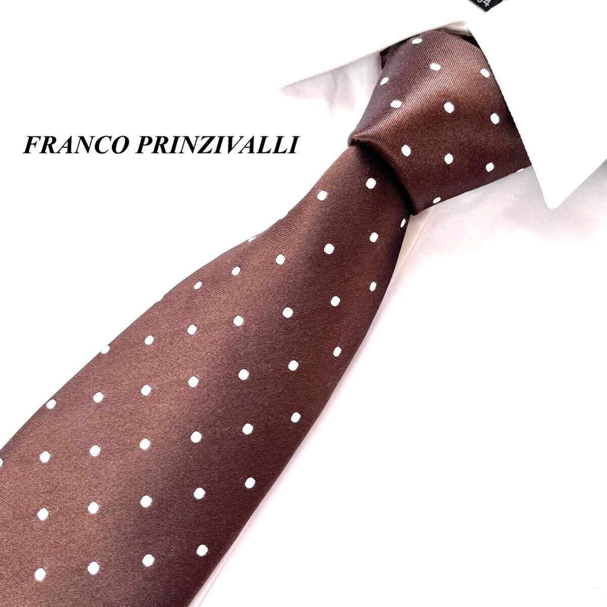 - 美品 FRANCO PRINZIVALLI フランコプリンツィバリー ネクタイ ドット柄 シルク ブラウン 茶 ビジネス カジュアル