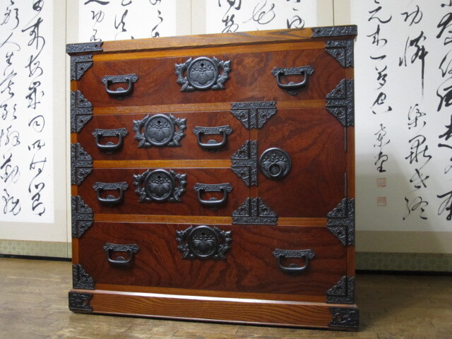 - 大正堂 購入 伝統工芸 欅材 拭き漆塗 南部鉄金具 民芸 南部箪笥1号 鍵付き/整理タンス/衣装箪笥/帳場箪笥/和家具(検)岩谷堂箪笥/仙台箪笥
