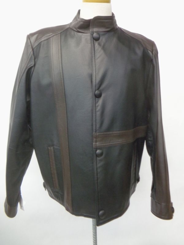 - メンズ ブラック&ブラウン レザー・ジャケット アメリカンサイズ42