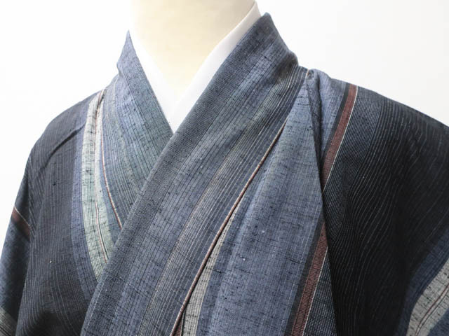 - 《京都一輝堂》【着物】紬 縞文 身丈約155.5cm 裄丈約64cm 25z01-116