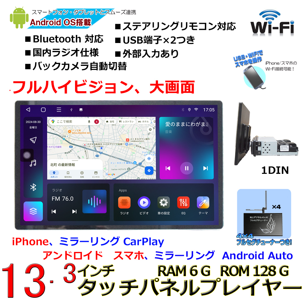 - カーナビ 2DIN 7インチ DVD内蔵 ラジオ USB SD 16G HDD アンドロイド スマホiPhone接続+専用4x4地デジフルセグチューナーセット「D344]