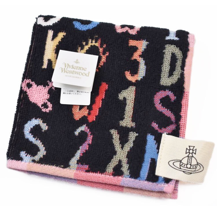 > ヴィヴィアン ウエストウッド タオルハンカチ 1枚 レディース ブランド POSTCODES 黒 ブラック マルチカラー 女性 婦人 ハンドタオル