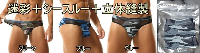 - 【特価】品薄/視線を惹きつけるカッコ良さ!! 迷彩柄シースルービキニブリーフ(M)グレー