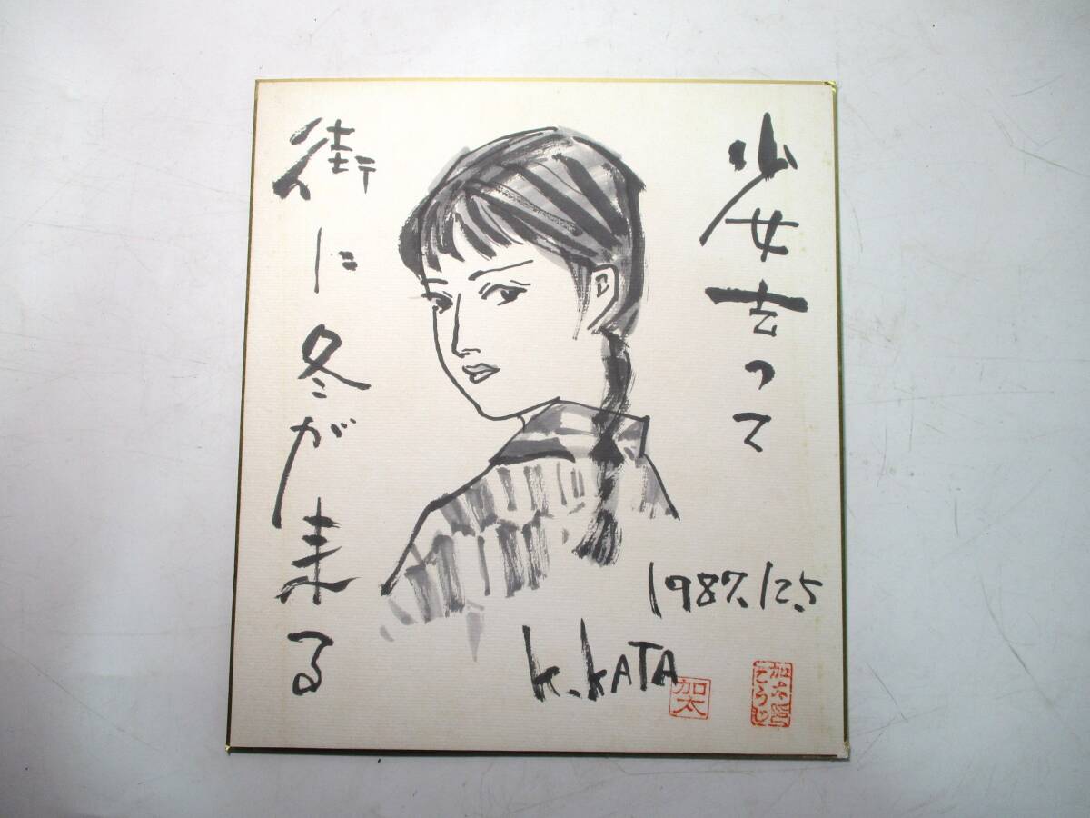 - 有名人サイン 色紙 加太こうじ 直筆サイン 絵画色紙 黄金バット劇作家 紙芝居作家 評論家