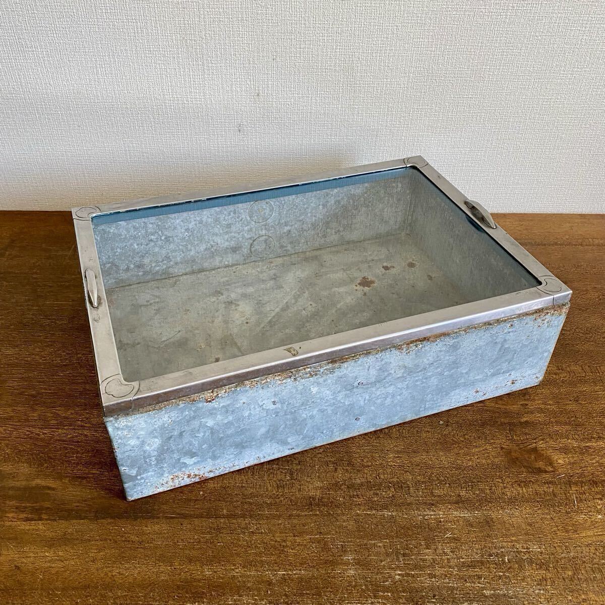- アンティーク 駄菓子ケース ブリキ ガラス蓋 / ショーケース 陳列 店舗什器 駄菓子屋 昭和レトロ 当時物