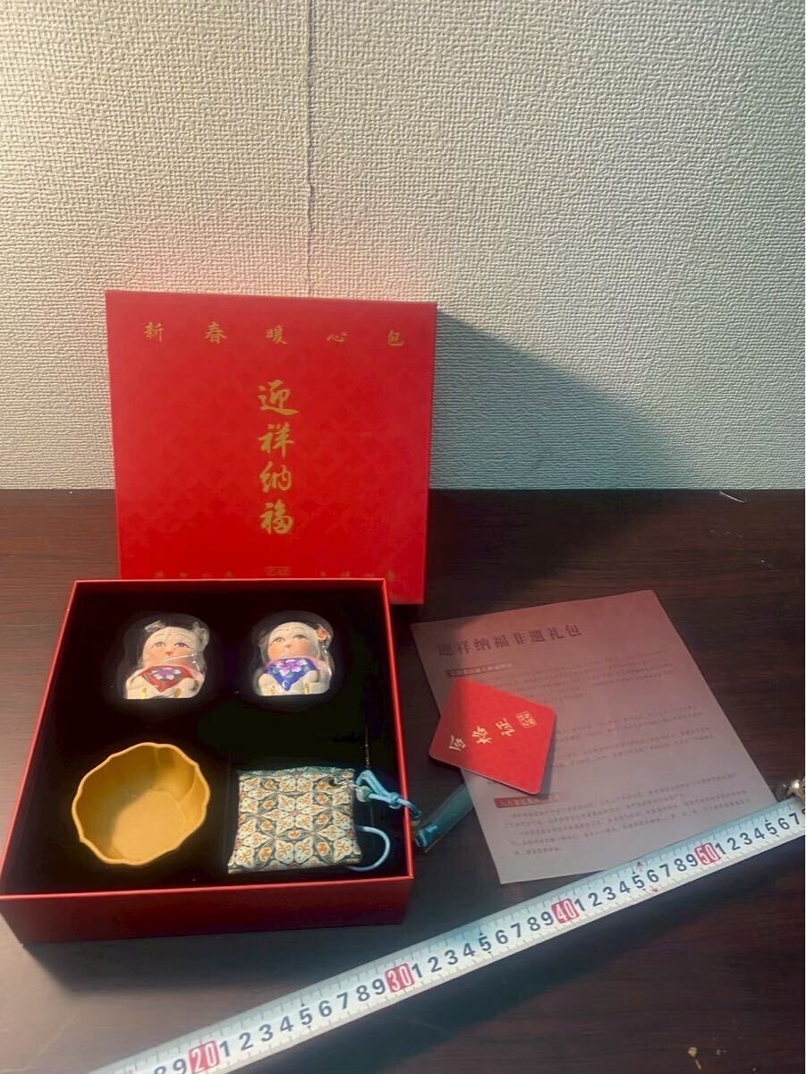 - 戸04b ◆新品◆中国 泥人形 幸福 縁起物 2個セット 箱入り 納福 インテリア 置物