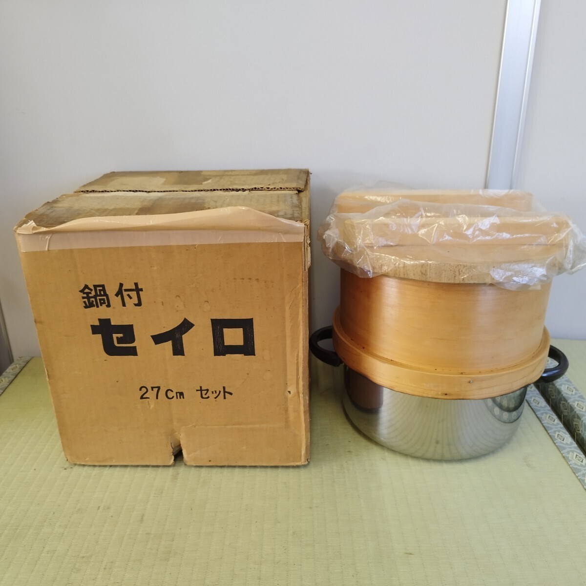 - 戸06d 和せいろ/鍋付き/27cm/ステンレス鍋/蓋付き/業務用/店舗/飲食店/厨房 セイロ 蒸し器 調理器具 昭和レトロ