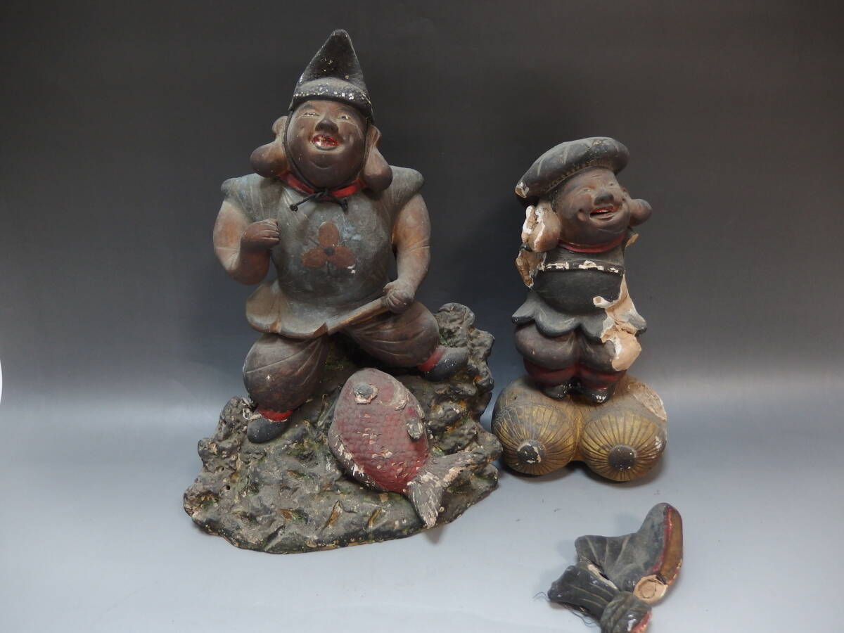 - 12)古い陶製人形 恵比寿・大黒 郷土玩具 土人形 大黒破損多