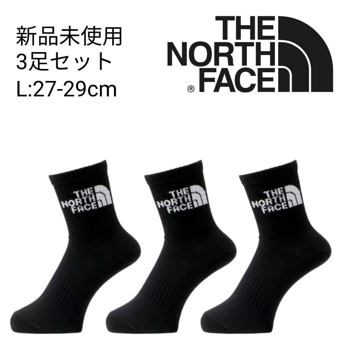 - 新品未使用 ザ ノースフェイス ジャカードロゴ クルー ソックス 黒 3足 Lサイズ THE NORTH FACE アウトドア 男女兼用 靴下 ブラック