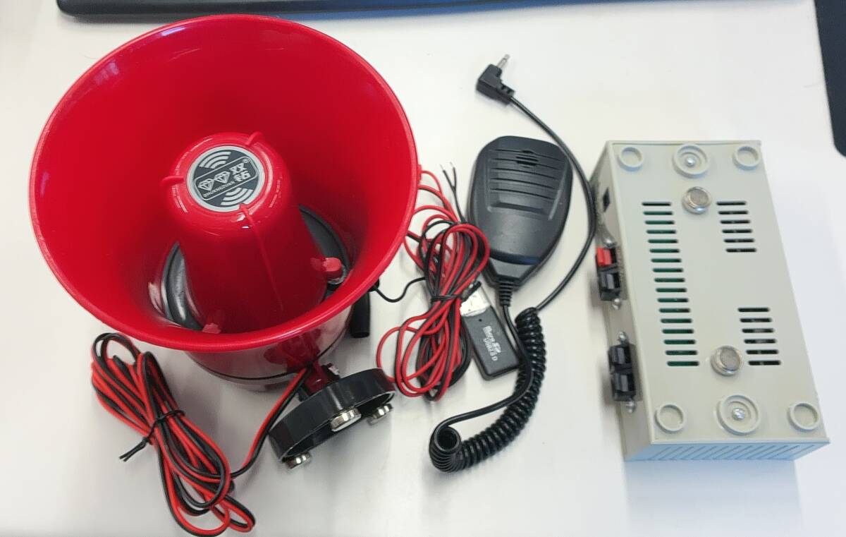 - 車載拡声器 カーメガホン スピーカー+アンプ+マイク DC12-24V汎用 録音/再生 MicroSD/USBメモリー対応 120秒録音機能付