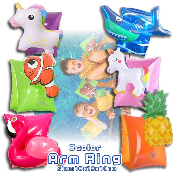 - 送料無料 アームリング 2個セット[両腕] 腕浮輪 浮き輪 キッズ 両腕 トロピカル パイナップル クマノミ フラミンゴ ユニコーン かくれクマ