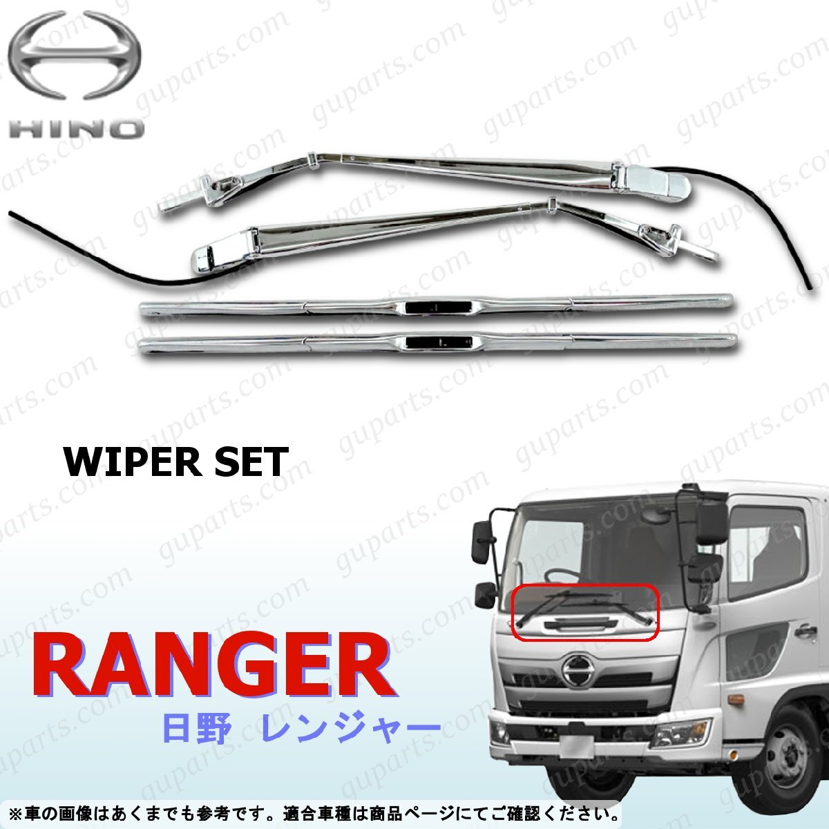 - 17レンジャー ワイパーアーム ワイパーブレード セット クローム メッキ 日野