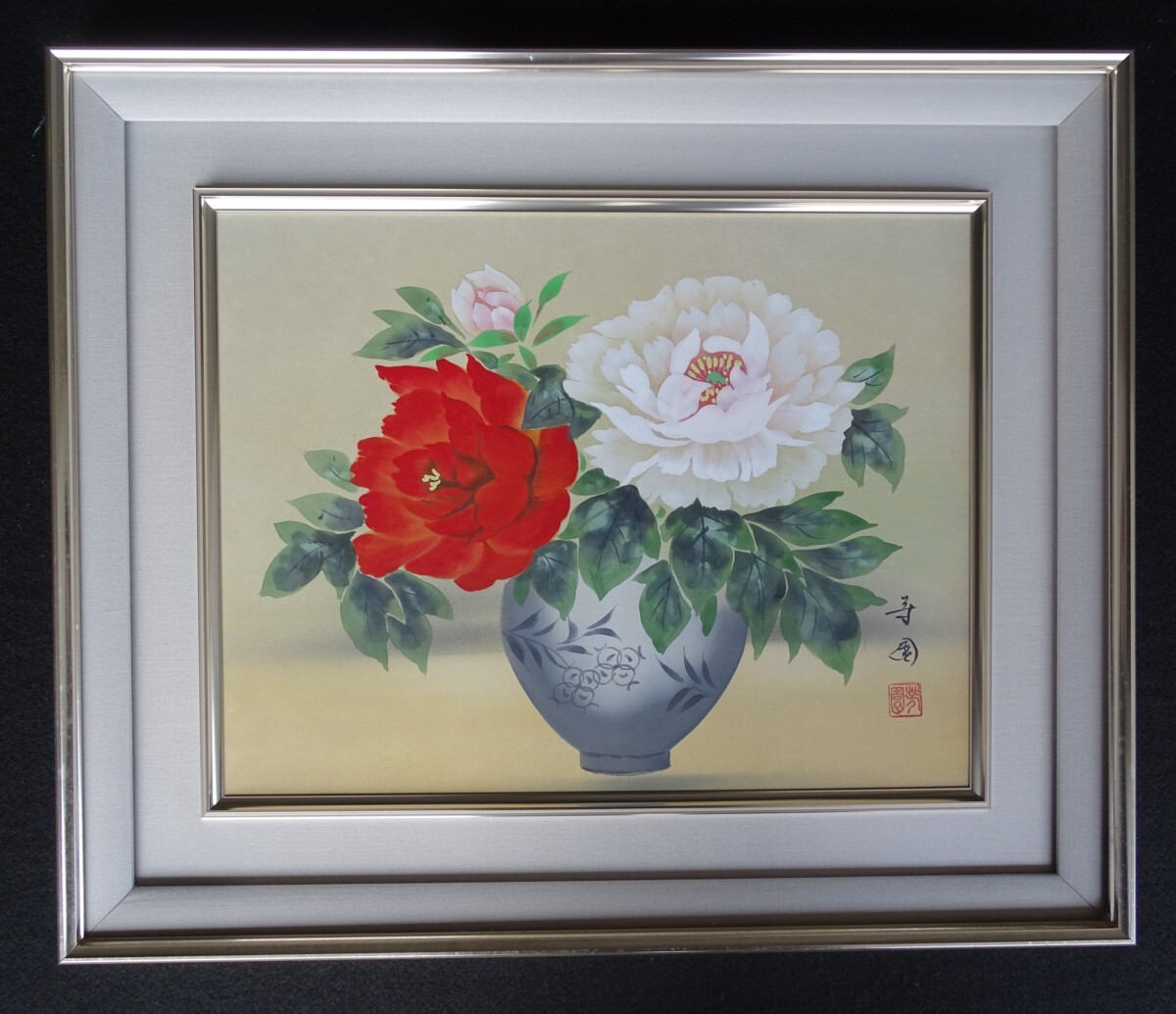 > ・作者名: 菊地径葉 ・画題: 花瓶に薔薇 ・技法:日本画(原画)〈GT32〉(B1-HIO-R4-6-26-28.5)