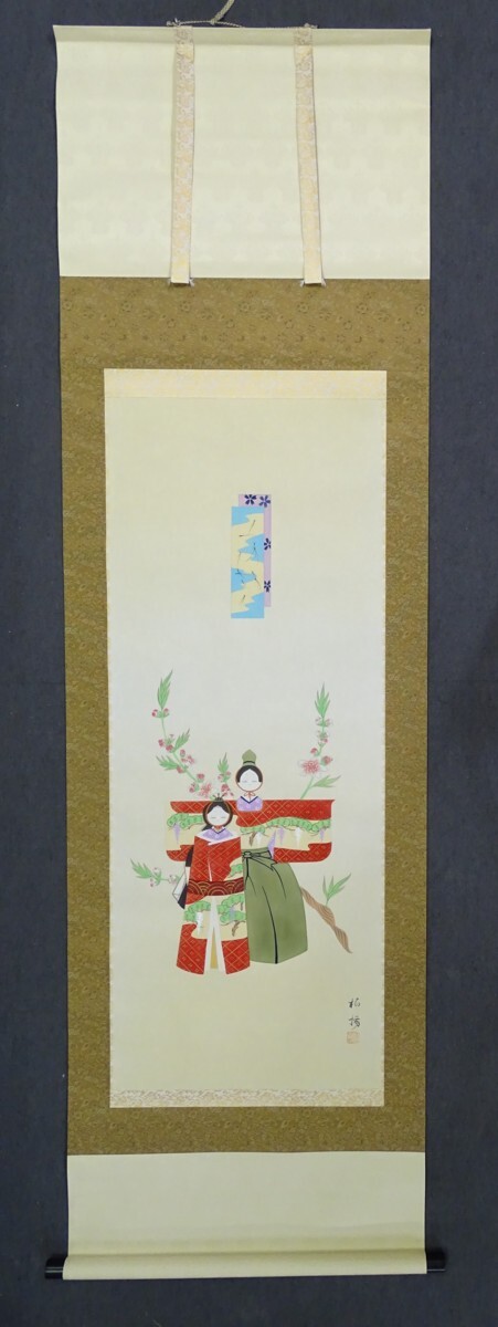 > ・品名:掛軸 ・作者: 佐々木柏揚 ・画題:「雛」・技法:日本画(直筆) (B2-HIO-R4-6-13-38.5)