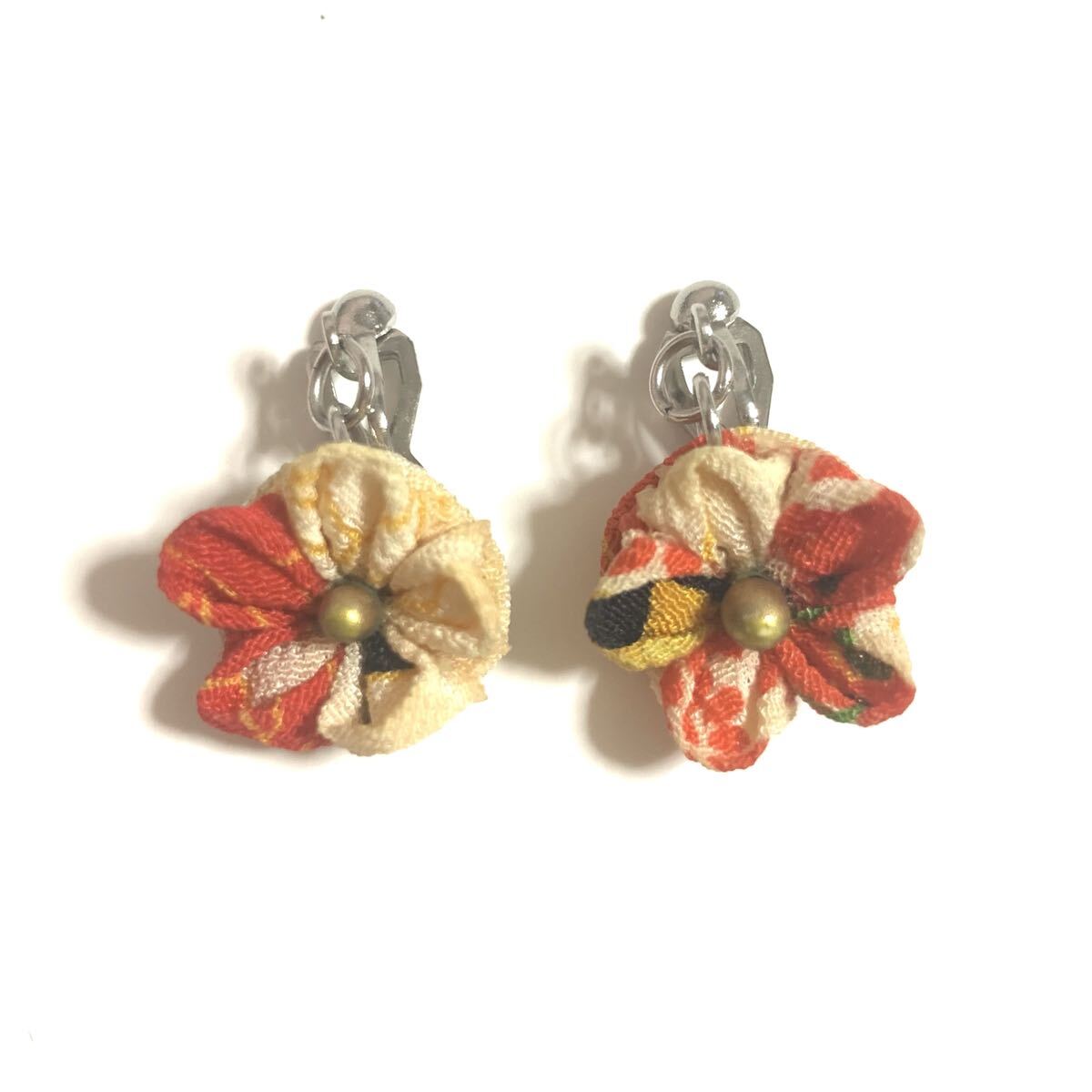 - 新品未使用 錦柄つまみ細工お花クリップイヤリング 赤 振袖 和柄 成人式 梅 レトロ 着物 和装 日本 和風