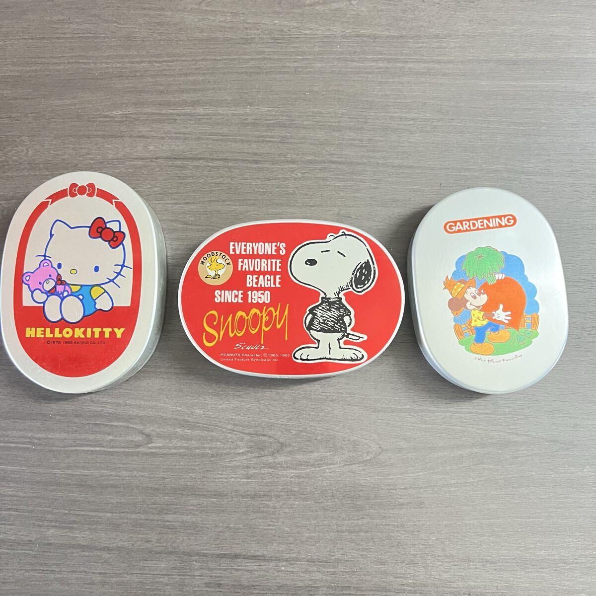 - 中古 お弁当箱 3つ アルミ弁当箱 昭和レトロ ハローキティ スヌーピー ミッキーマウス 弁当箱 Y10-8