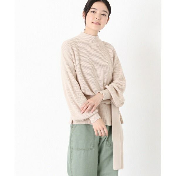 - yK06 kagure かぐれ 畦ニット プルオーバー ベルト付き ハイネック ニット