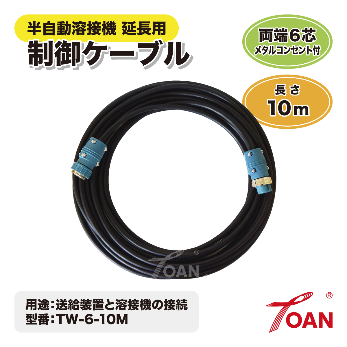 > PANA 半自動溶接機 延長用 6芯 制御ケーブル 長さ:10m TOAN型番:TW-6-10M 1本 両端6芯メタルコンセント付き