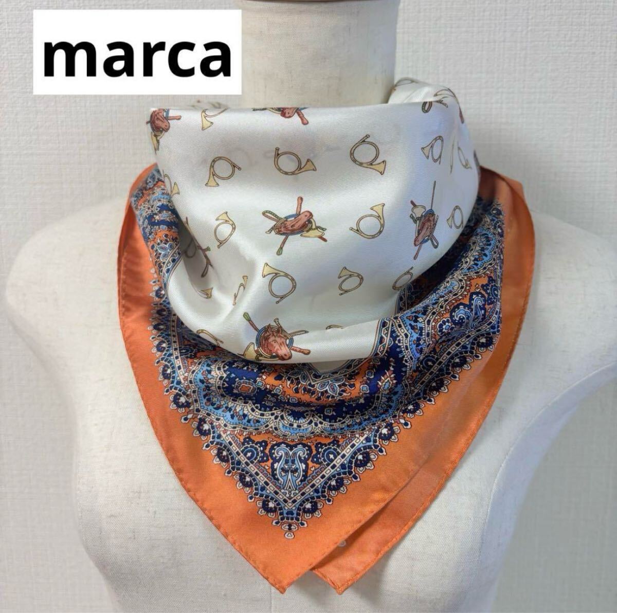 - 美品◇Marca◇伝統横濱スカーフ◇ホルン シルクツイルスカーフ◇58×58cm