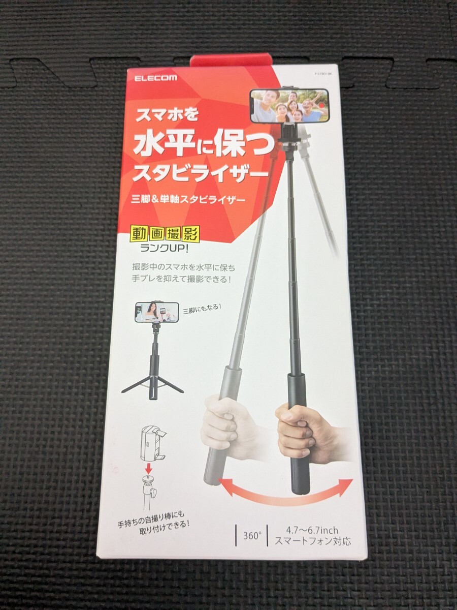- ◎0710u0201 エレコム スマホジンバル スタビライザー カメラ対応 三脚一体型 (高さ調節可能) 単軸 自撮り棒 P-STB01BK ブラック