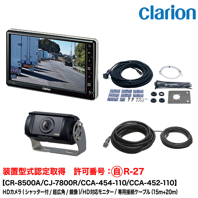 - クラリオン 装置型式指定 トレーラー用カメラ/モニター/配線セット【CV-SET333】CR-8500A/CJ-7800R/CCA-454-110(15m)/CCA-452-110(20m)